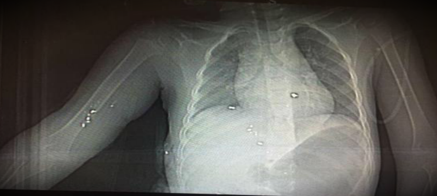 Los rayos X proporcionados por la familia muestran varios fragmentos de proyectil que permanecieron en el torso del niño hasta el momento de su muerte