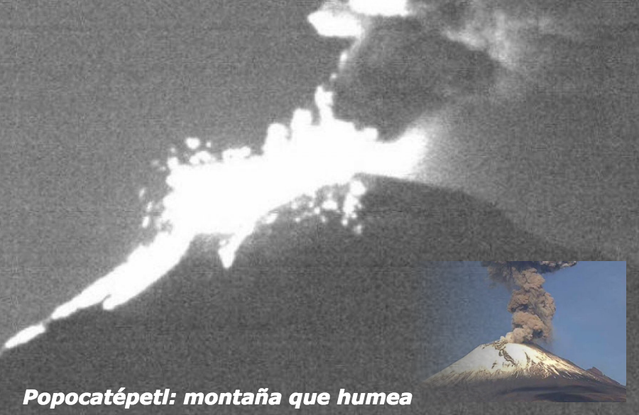 Junto con el Iztaccíhuatl, el Popocatépetl siempre ha estado ligado a cultura e historia de México. Su nombre proviene del náhuatl popoca: “humear” y tepetl: “montaña”. Según una leyenda nahua se trata de un guerrero que al regresar de una batalla se encuentra su amada muerta. Él toma su cuerpo, lo lleva a la cima de una pirámide y lo cubre con una sábana blanca mientras se planta junto a ella como fiel guardián.