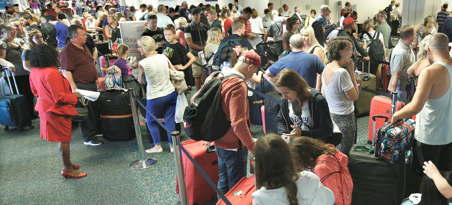 Colas para escapar de Irma en el Aeropuerto Internacional de Orlando. | Reuters