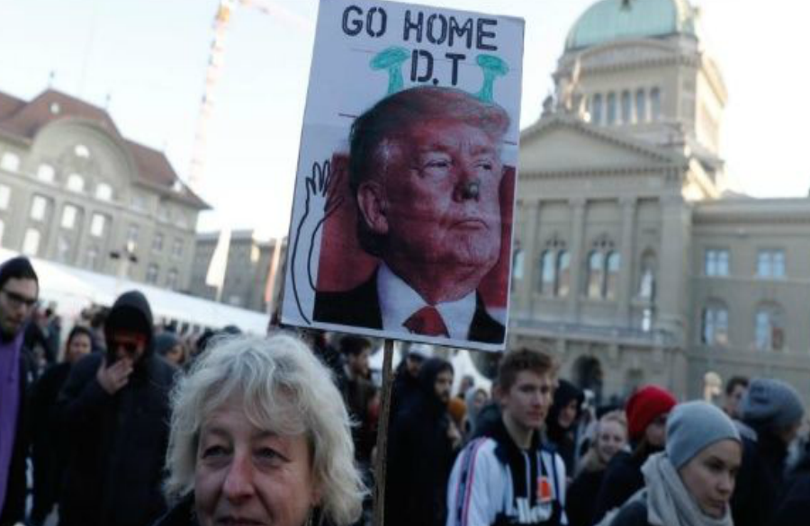 Hace unos días, ciudadanos suizos salieron a las calles a manifestar su rechazo a la presencia del presidente de Estados Unidos (EU), Donald Trump, en el FEM. La protesta fue organizada por la Asociación Anticapitalista Suiza. Además de la figura de Trump y sus recientes declaraciones insultantes hacia el pueblo de El Salvador, Haití y de países africanos, se criticó también la globalización neoliberal y el rol que juegan en el mundo las compañías transnacionales.