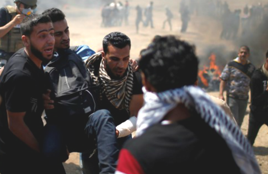 Varios palestinos trasladan a un herido en las protestas en Gaza contra la embajada de Estados Unidos en Jerusalén. – REUTERS