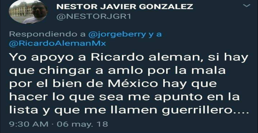 “Les hablan” que decía: “A John Lennon lo mató un fan. A Versace lo mató un fan. A Selena la mató un fan. A ver a qué hora, chairos”, en clara referencia a los simpatizantes del candidato presidencial de Morena, Andrés Manuel López Obrador.