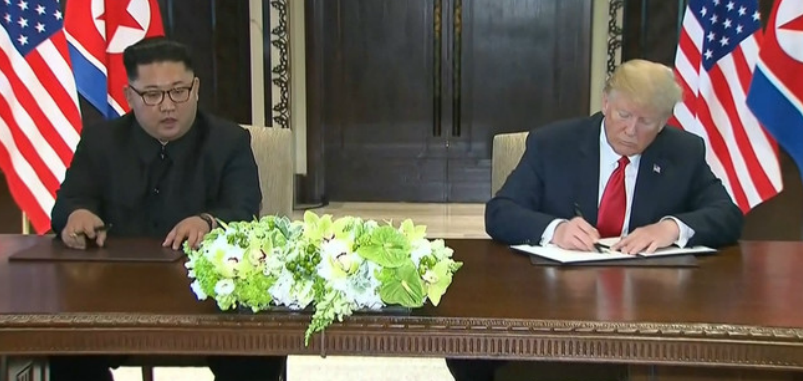 Ambos líderes han expresado su voluntad de establecer unas relaciones bilaterales renovadas, «basadas en el deseo mutuo de paz y prosperidad» entre los dos pueblos, ratificando así la declaración de Panmunjom, firmada por Kim el pasado mes de abril junto a Moon Jae-in, su homólogo del Sur, comprometiéndose a trabajar por la completa desnuclearización de la península coreana. Sin embargo, no se han ofrecido detalles hasta el momento sobre cómo se llevará a cabo dicho proceso. Trump ha afirmado en rueda de prensa que contará con un equipo formado por personas de varias nacionalidades para verificar la destrucción del arsenal nuclear.