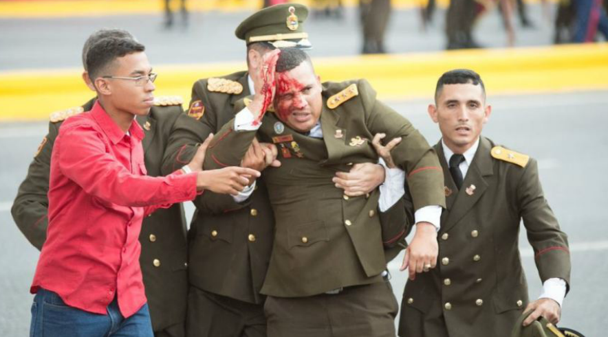 Un militar resulta herido durante el atentado contra el presidente Nicolás Maduro. (Twitter @XHespanol)