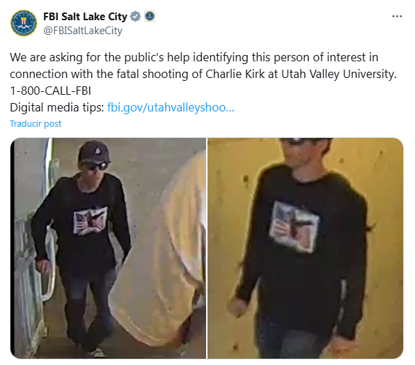 El FBI ya liberó imágenes de un sospechoso y ofrece hasta 100 mil dólares de recompensa. En la zona encontraron un rifle de alto calibre y huellas que podrían ser clave. Aunque al inicio se habló de una persona detenida, la versión fue corregida: no hay arrestos hasta ahora.