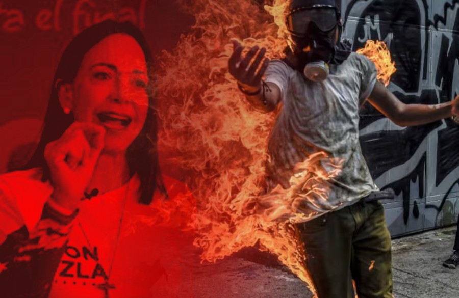 Machado también fue uno de los arquitectos políticos de La Salida, la campaña opositora de 2014 que convocó a protestas intensificadas, incluyendo guarimbas . No fueron «protestas pacíficas», como afirmó la prensa extranjera; fueron barricadas organizadas para paralizar el país y forzar la caída del gobierno. Se bloquearon calles con basura quemada y alambre de púas, se incendiaron autobuses que transportaban trabajadores y se golpeó o asesinó a personas sospechosas de ser chavistas. Incluso se atacaron ambulancias y médicos. Algunas brigadas médicas cubanas casi fueron quemadas vivas. Edificios públicos, camiones de comida y escuelas fueron destruidos. Barrios enteros fueron tomados como rehenes por el miedo mientras líderes de la oposición como Machado vitoreaban desde la barrera y lo llamaban «resistencia».