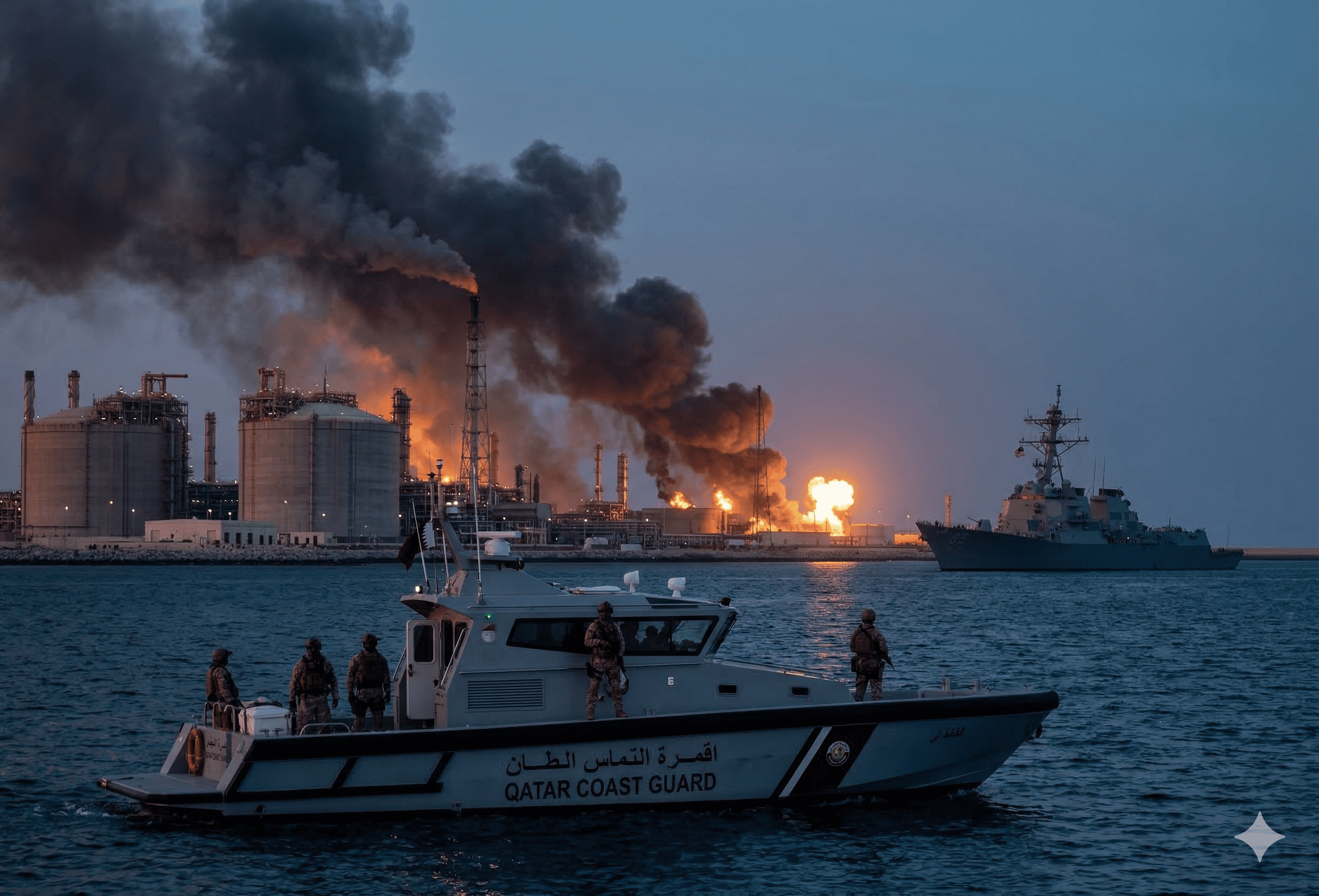 Imagen ilustrativa: El complejo de Ras Laffan bajo una espesa nube de humo negro, símbolo de una región consumida por la política de confrontación de la administración Trump y el asedio constante del eje EE. UU.-Israel contra la soberanía iraní.